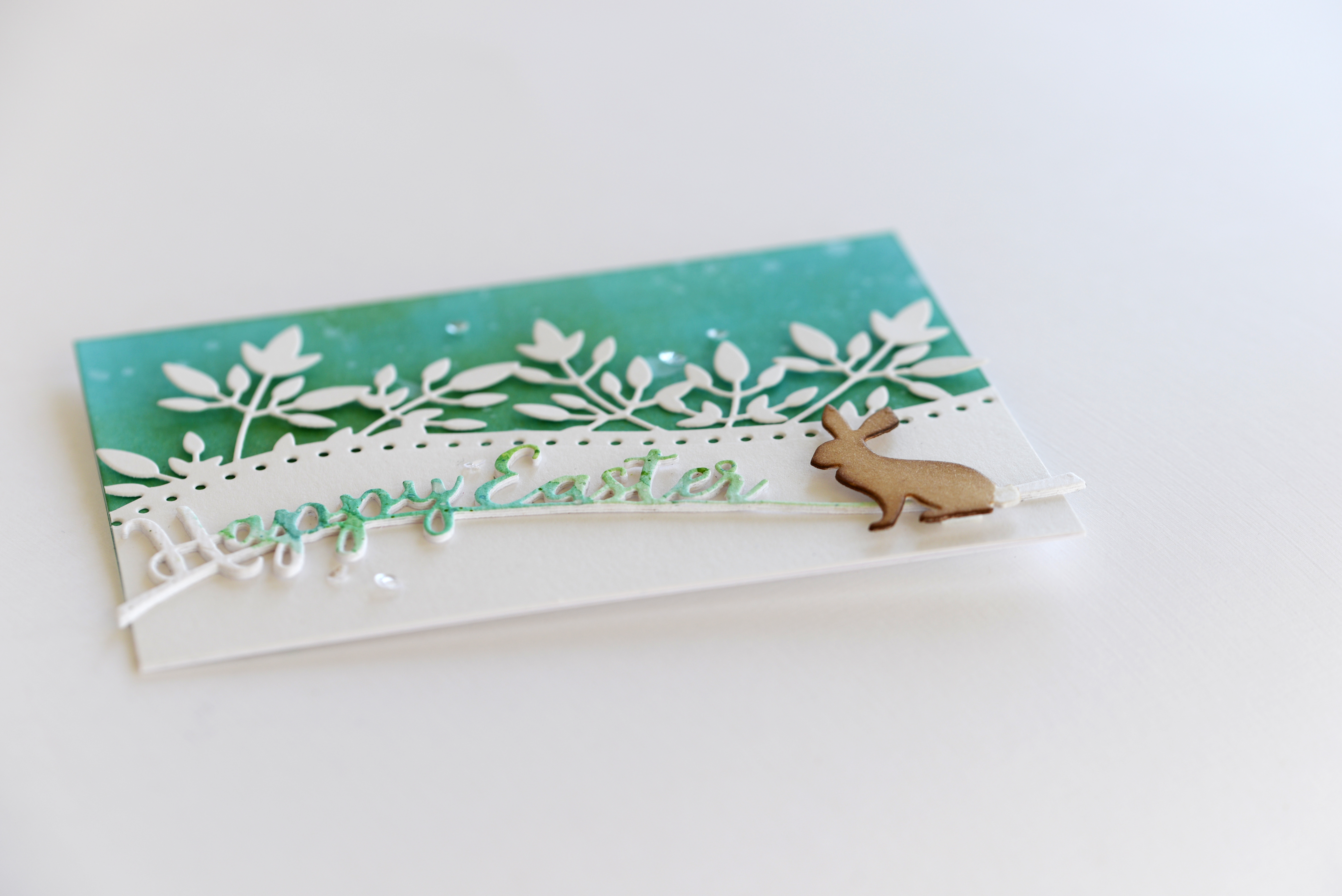 I made a watercolor background with Distress inks and cut the Happy Easter Curve die out of it…in the card I’ll post tomorrow, you’ll see what I did with the negative of the cut.