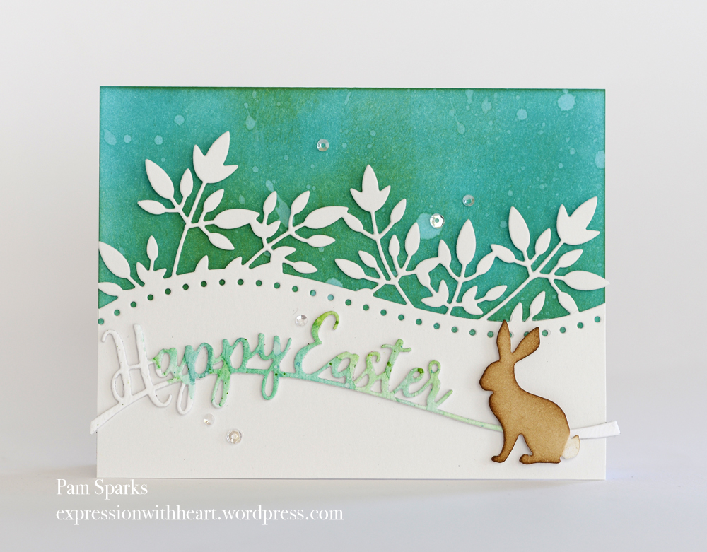 5. What a fun Easter card, Pam! I love that sponged and water splattered background, the die and especially the bunny! Thanks so much for sharing with us at CAS Watercolour!