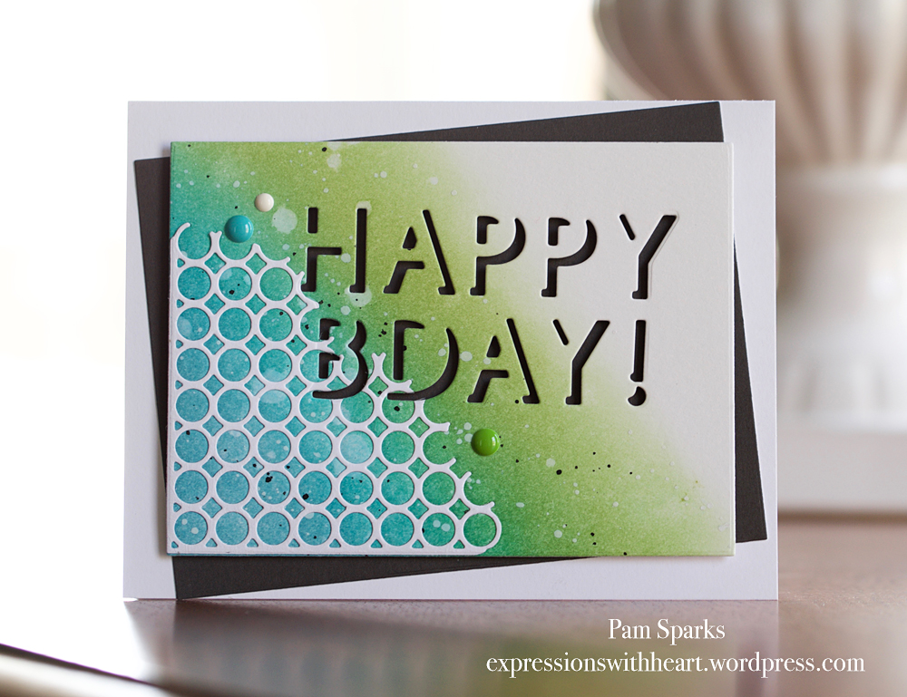 9. Lots and lots of awesomeness to see here today! First sample I’ve ever seen with the Palma Curve. That’s one I bought (card tomorrow). I love that Birthday Pop Culture die, too. I might have to somehow CASE the last card in pink. It’s so pretty with the border and pink polka dots showing through. Very cool how you did the acrylic background on your first card. Love love love love the blue card! Wow x 5!