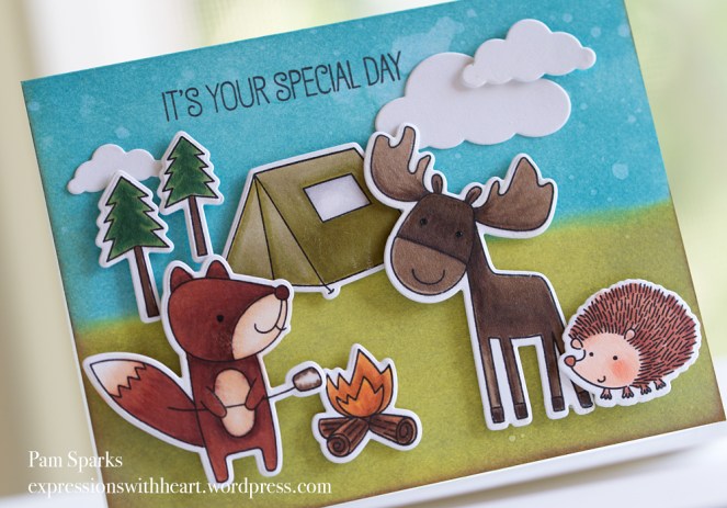 Ack! You get to make all these cute cards for the grands and I love them so much! I’ll have to ask my friend if she ever needs kids cards. She probably does as she sends LOTS of cards. It’ll give me a good excuse. All your inking and coloring is fabulous. The die cut images give the card great dimension but still easily mailable. I’ve got a thing about mailable cards. They have to fit in a regular envelope. Sometimes I go whole hog, but I’m not real happy when it comes time to mail them. These critters are a hoot, but the way you made the scene gives them such life!
