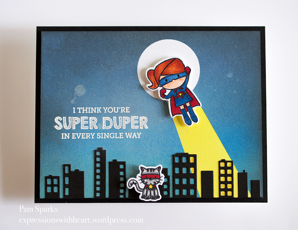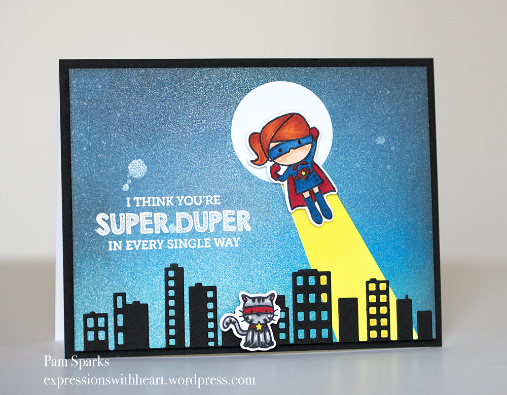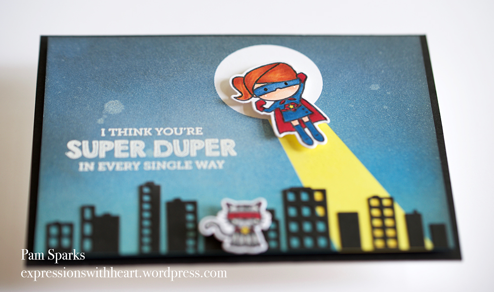 Awwww that is so cute!! What a perfect tailored made card for Lizzie!! Love how you did the masking and the background, and the little red headed super hero girl is darling!!