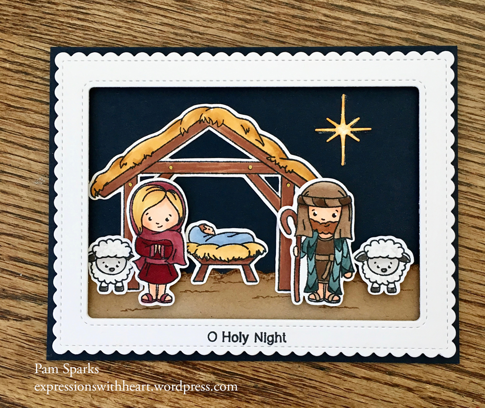 Love the card! Such a cute scene! This reminds me of a nativity set I made in ceramics in the early 80’s. Same child-like figures. Both of my daughter’s are now arguing over who should get it. LOL!