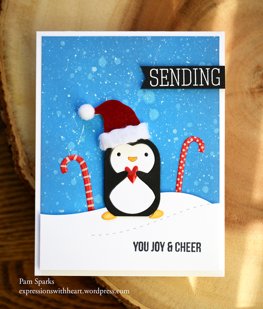 Oh my gosh Pam, these little penguins are simply adorable.. I love the cute little hat & your wonderful background… I laugh though as I see myself trying to make a background like yours. I’m sure I would grab the paint instead of the water, pour some in my hand, quickly clap my hands together over my paper & paint would go flying everywhere around my craft room… ho-ho-ho