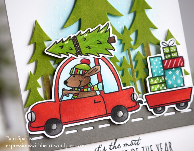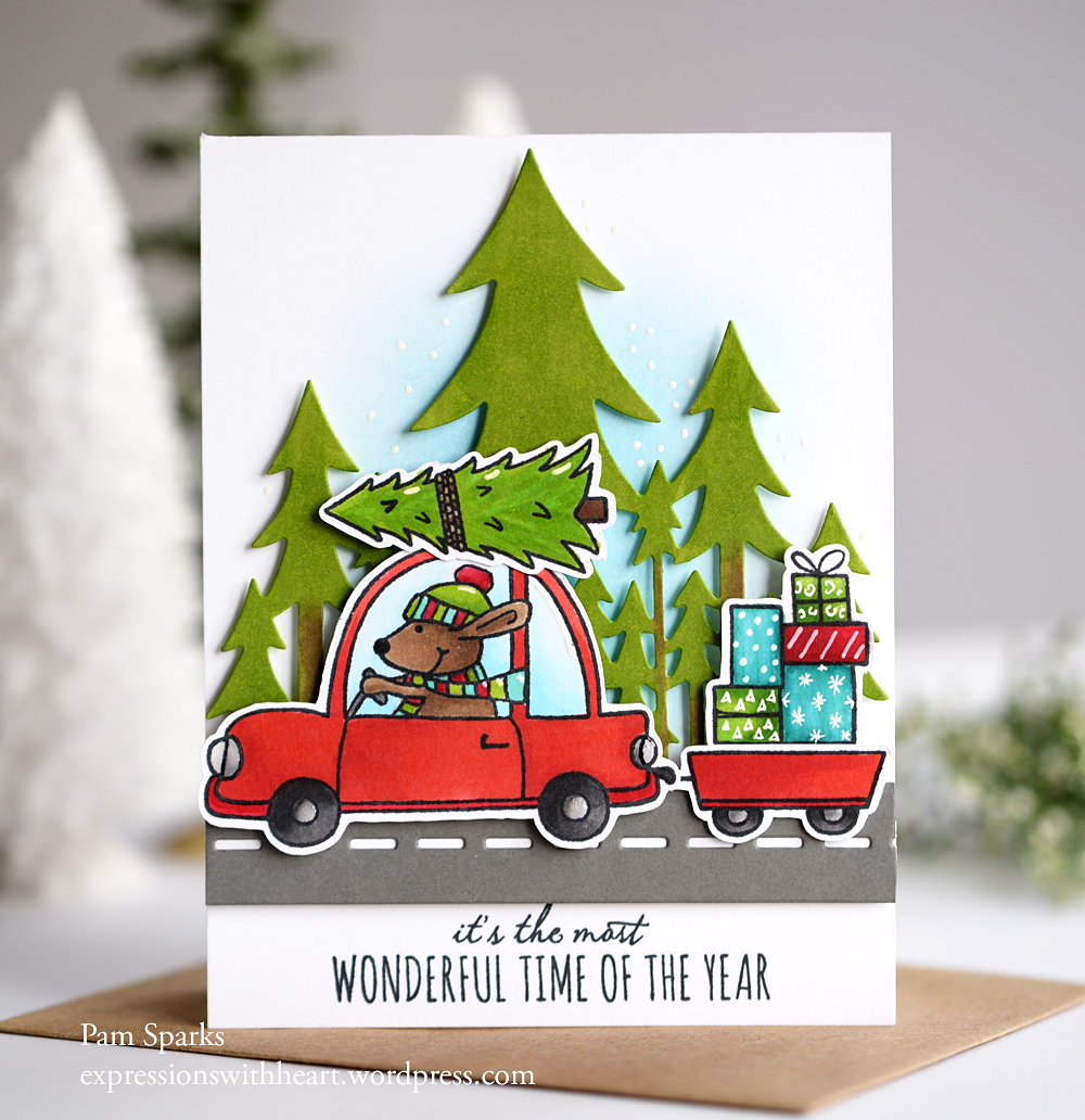 I LOVE those trees! This is such a cute card Pam…and so fun. Love the adorable images! Happy New year!