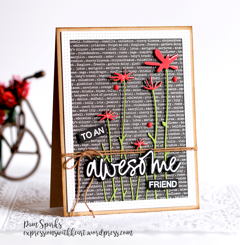 1. Great card. Love the shadow on the “awesome”. The black paper sets off everything on top of it. Clever lady!!!