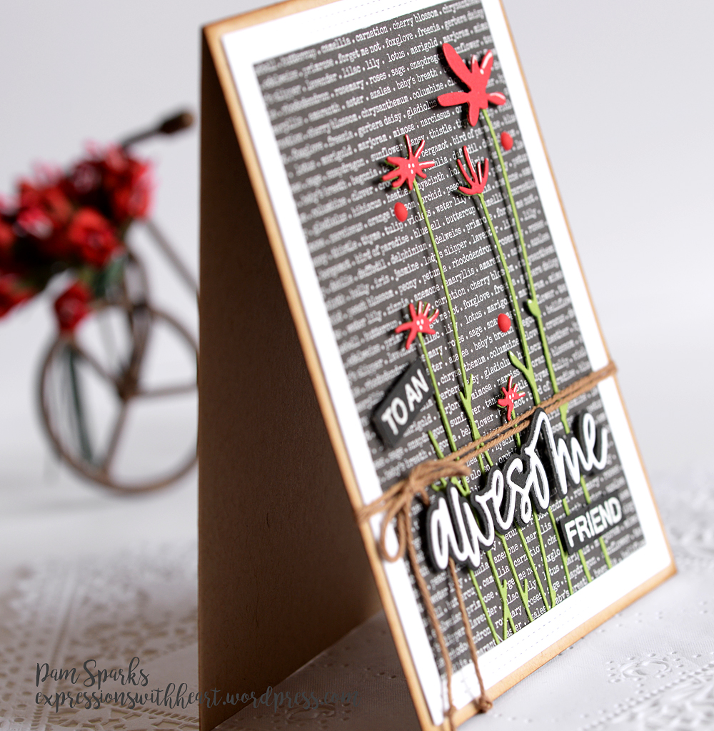 4. Beautiful card, Pam! Love the background paper you used, it’s perfect for that amazing red flower! Great job, as always…thanks for sharing!