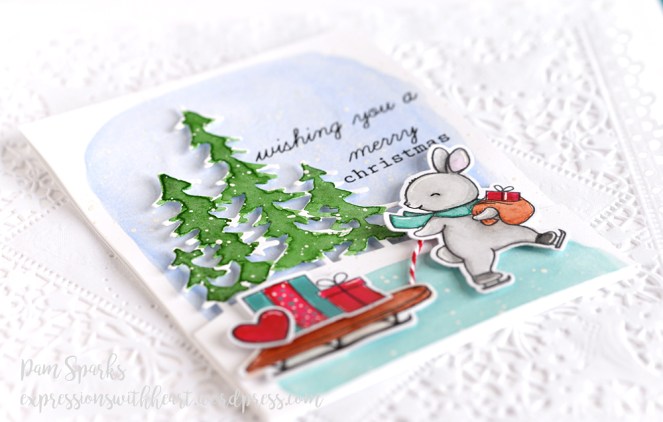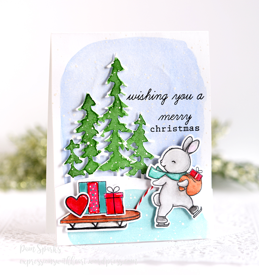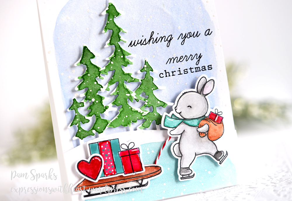 6. This is just adorable! Love the cute bunny pulling his sled full of gifts and the happy little scene you created is just perfect! Awesome job, Pam!