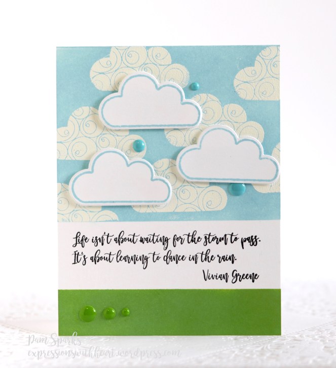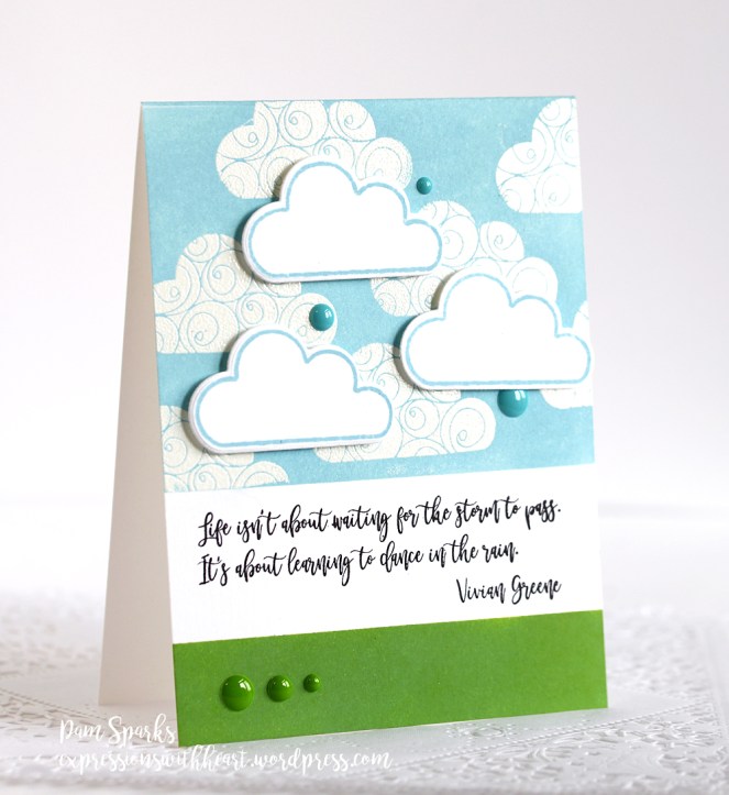I really like both of your cards! I like the little flourishes in the some of the clouds. It’s pouring rain where you are? We live in a rain forest area, but this year we haven’t had rain since May & we have so many forest fires.