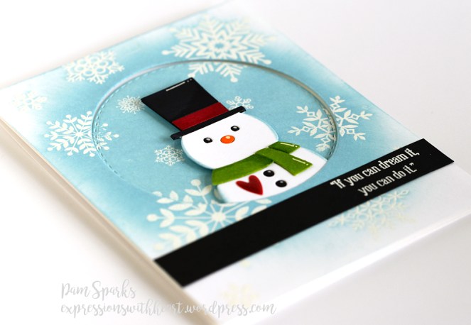 Both of your cards are so cute Pam!😊 The snowman looks like he’s in a snowglobe! Thanks for sharing!