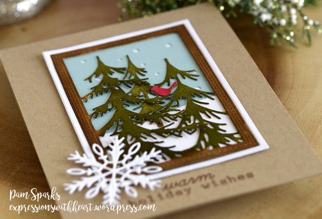 What? No… it doesn’t really need that red plaid. I mean, it would look awesome, but it looks extremely awesome as is. I love anything nature-themed so I guess just give me a masculine card and I’m happy. This is beautiful, Pam!