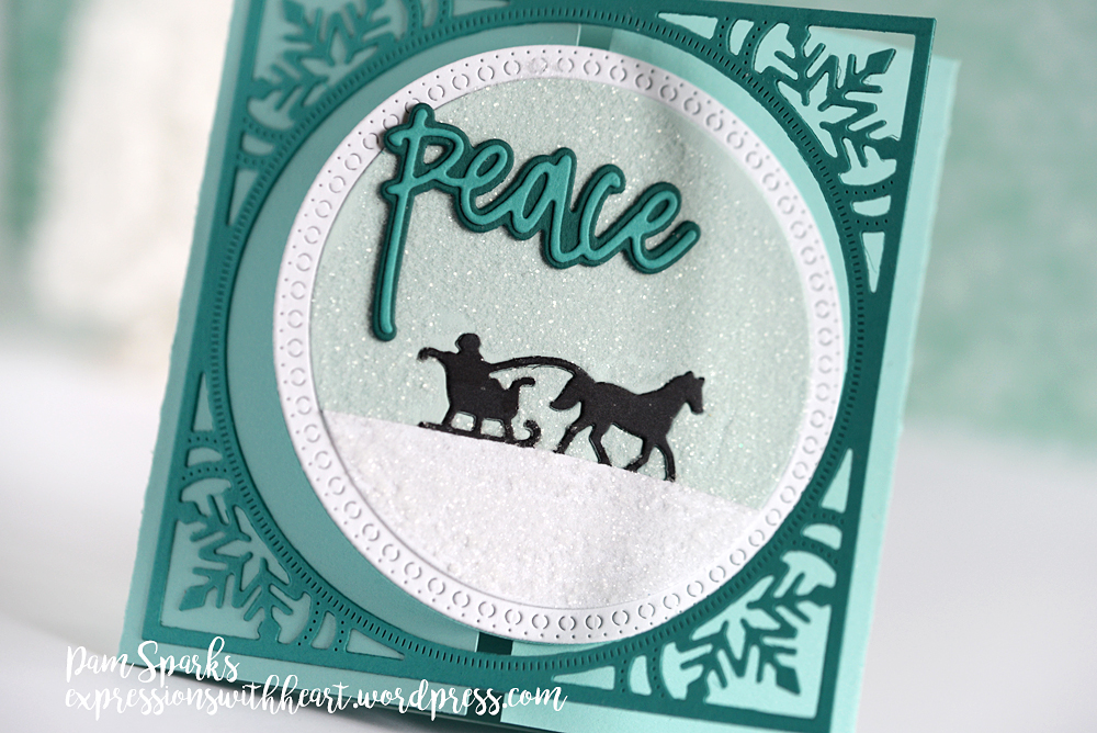 The pretty word die cut on the front is the NEW Memory Box Peace Jotted Script die. I just love the handlettered look of it!
