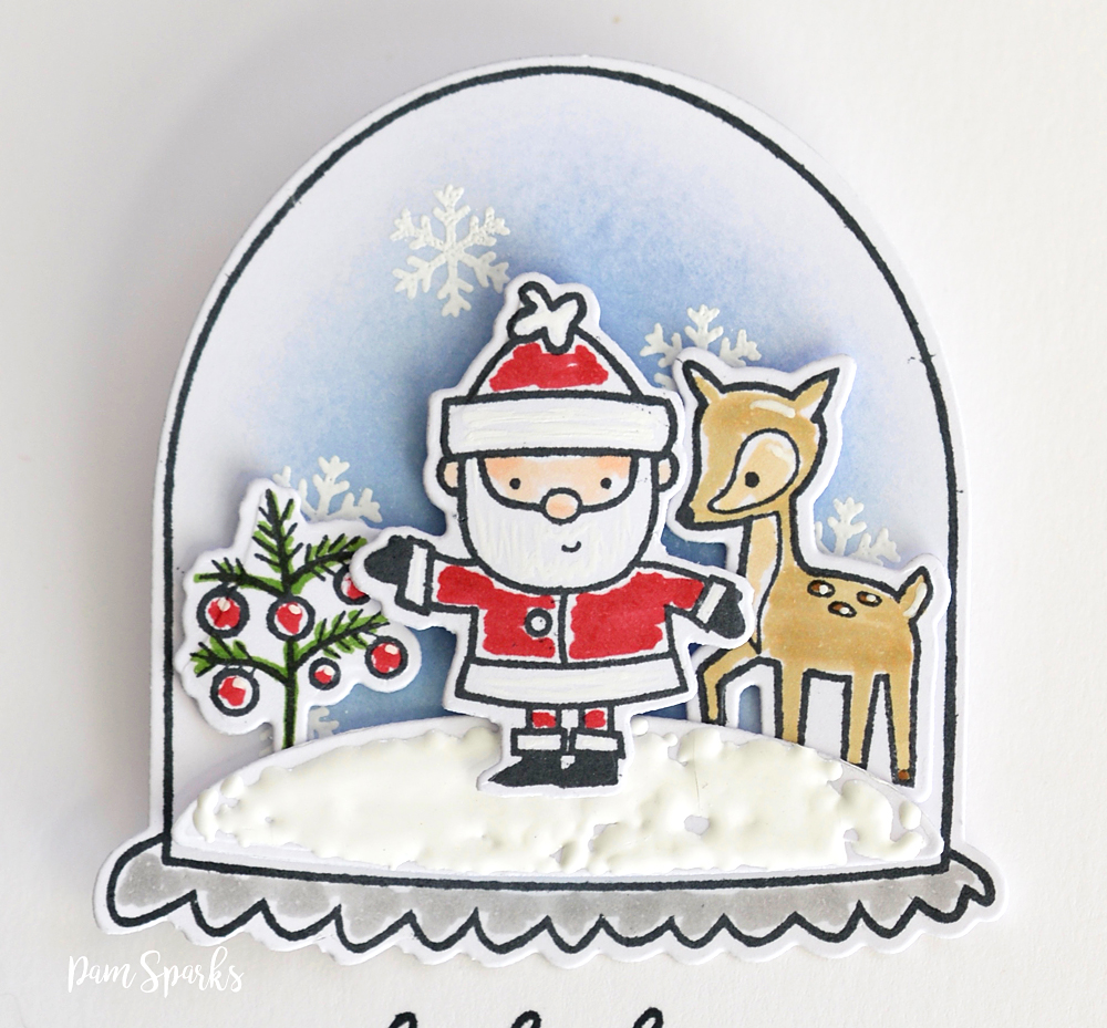 4. Adorable winter scene with Santa and reindeer inside your snowglobe. The wobble makes it even more fun. Great video to show how cute it is in motion! Thanks for being our Guest Designer this month at CAS Christmas! xx
