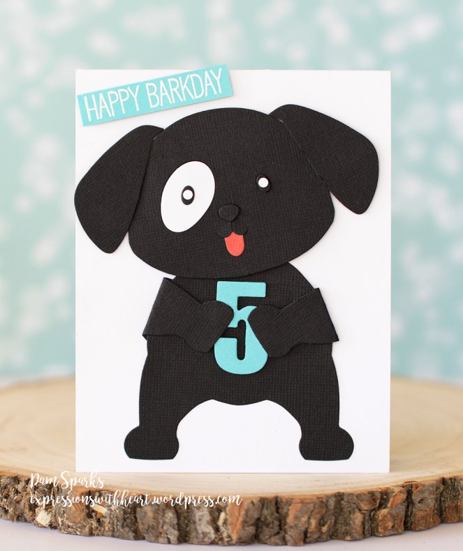 I used two of the new Big Picture dies… I’ll link them below and an old Quickutz number die for the 5. The sentiment is from a MFT stamp set. I’ll try to find it to link to also. Oh, I cut an extra body and used the legs for paws too! 😀