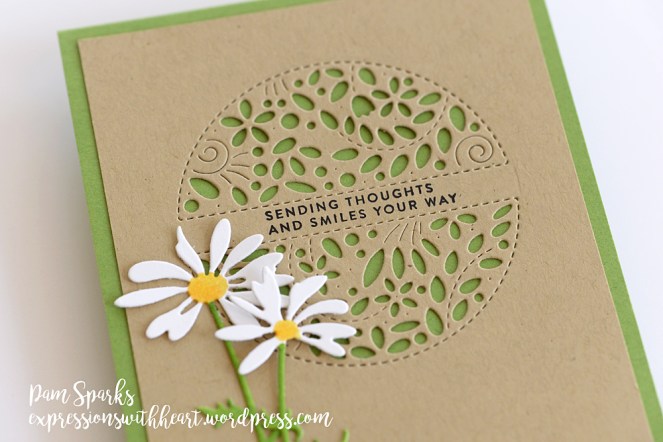 Next photo, the cards together…a variety of things you can do with this die. Use your other circle dies to frame it etc. My white die cut panel is popped up to the card base with foam mounting tape and the kraft die cut panel is adhered directly to the card base.