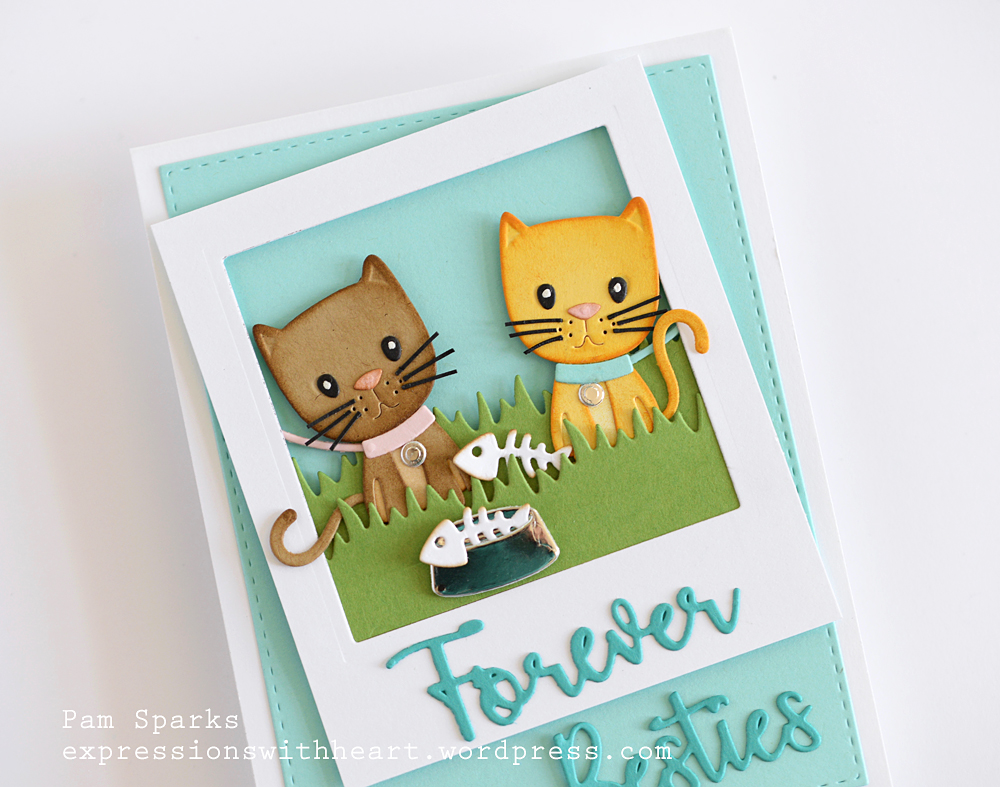Look at these cute kitties!  I had fun die piecing this set together for this card. It comes with the grass, the sentiment, everything!