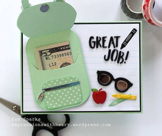 1. Hi Pam how cute is this love the backpack and the cute glasses. It won’t be long before the kids go back to school it seems like they just go of for summer break. Were does the time go? Adorable pocket to add a few $ what kid doesn’t like money.
