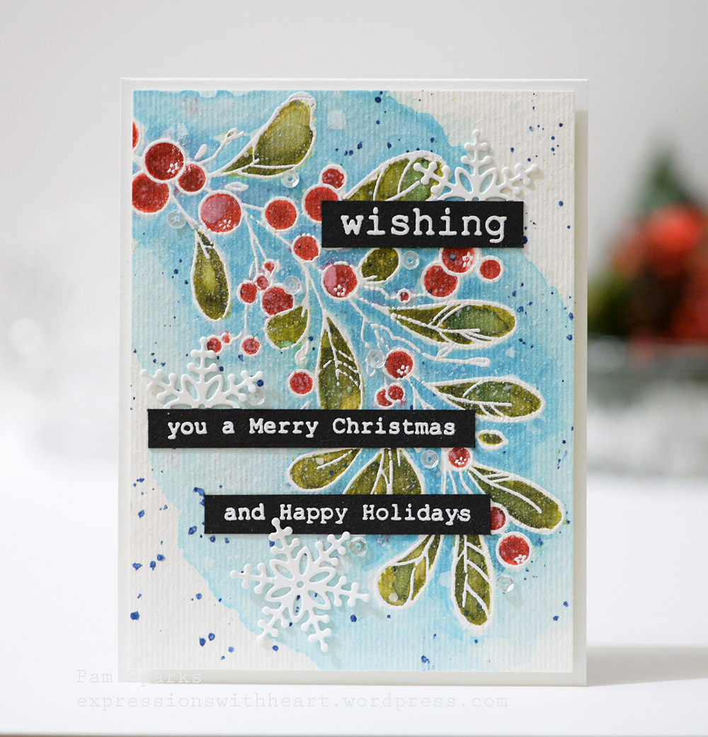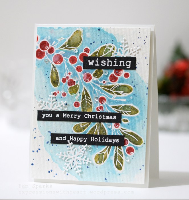 6. LOVE! Your red berries are much prettier than actual mistletoe berries which don’t have much color at all. I want that sky blue Big Shot… but I absolutely don’t need it. Gosh, it goes beautifully with your card!