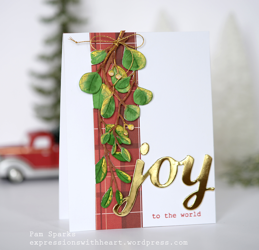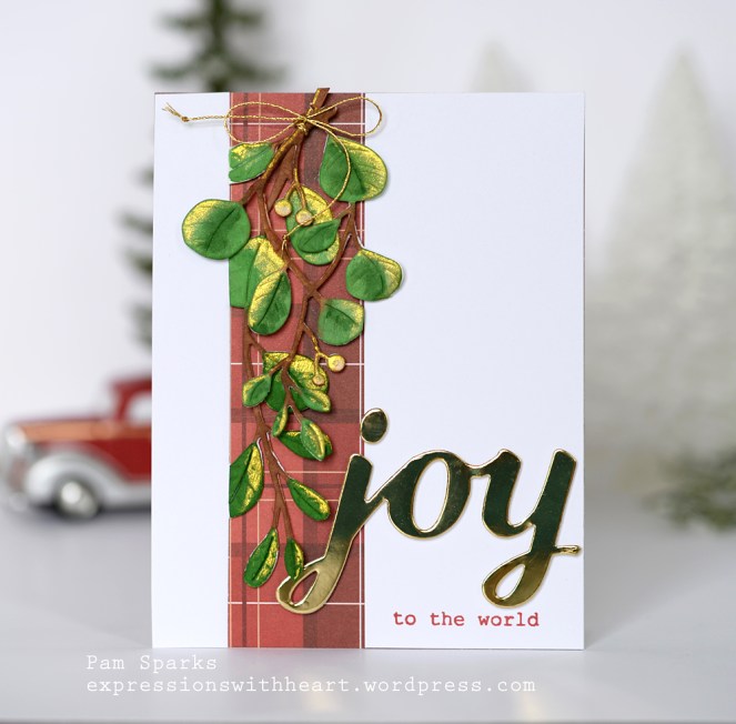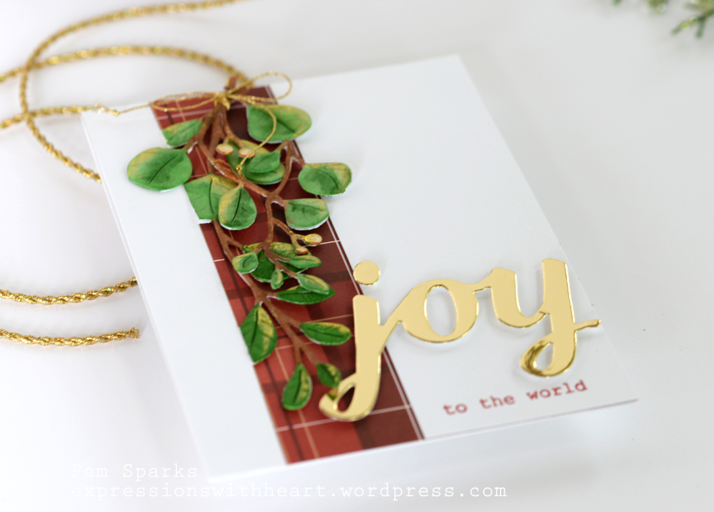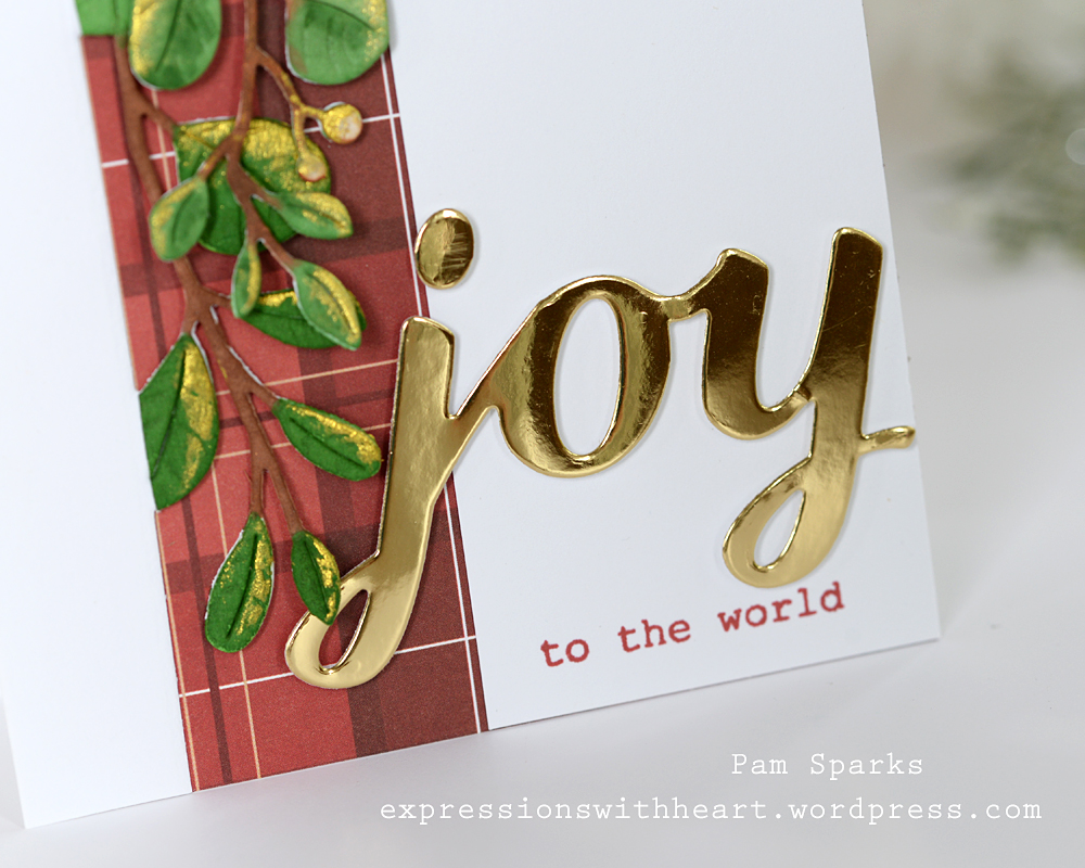 A close up of the new poppystamps Holiday Joy die cut in shiny mirror gold foil cardstock.  Love that stuff!