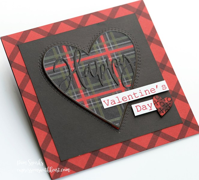 Then I made another Happy Heart Collage Card… I had die cut this black one before I made the orange/pink strip type one from last week.  I couldn’t make it work then but all of a sudden I was inspired to use the Memory Box Christmas 6×6 paper pad plaids and it works!