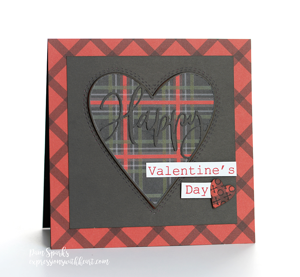 Then I made another Happy Heart Collage Card… I had die cut this black one before I made the orange/pink strip type one from last week.  I couldn’t make it work then but all of a sudden I was inspired to use the Memory Box Christmas 6×6 paper pad plaids and it works!
