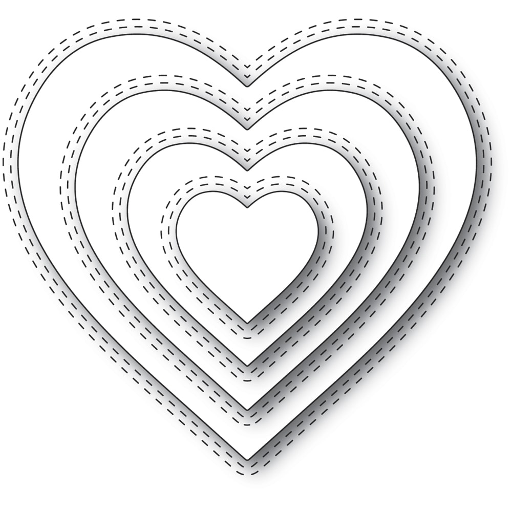 When you die cut these heart dies, there are surrounding stitch lines. So I used the largest size to get the largest heart cut and using the next size down heart, I die cut in the vellum again and cut the double stitch lines! I cut again in the pattern paper. I love this pinstripe looking paper pad! This gives you an idea what the die looks like. (not actual sizes)