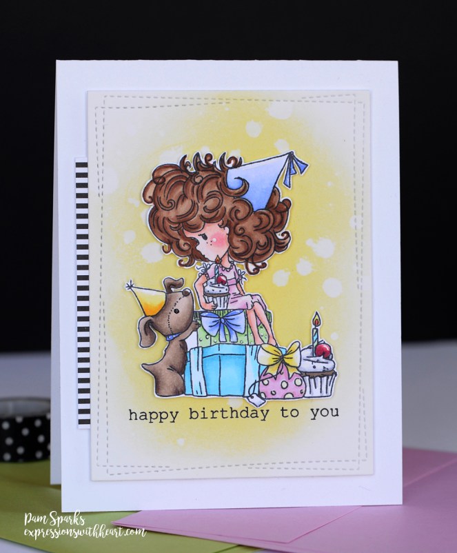 What a cute card Pam! I love Polkadoodles! I love the background too! Thanks for sharing!