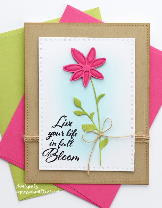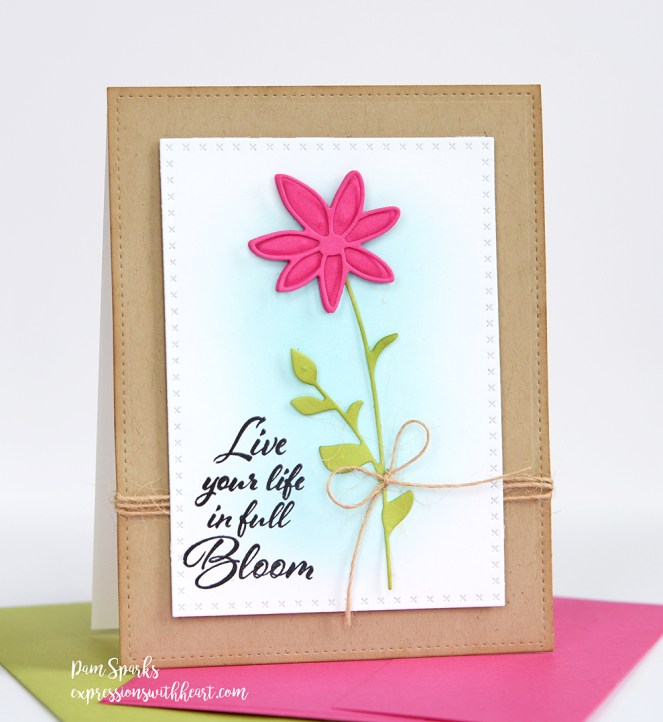 2. I love that it comes with a foundation bloom. You’ve got a very pretty CAS (but not too CAS) card for your group, Pam! You always use kraft so well, and the twine is perfect with it. A nice soft blush of blue behind the flower. Really love this!