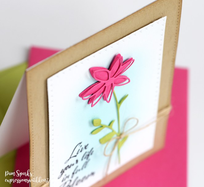 The Single Stem Daisy comes with a backer die for the flower.  I die cut it in TE Lollipop cardstock, put the cut into the full flower die and embossed it with a stylus.