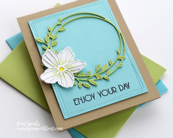 Dang, this is pretty, Pam! Just the right touch of color on the flower. You’re in your element with these dies. Love this! Got a thing for wreaths. This is a big one! Don’t make me shop. I already bought another new camera and a whole bunch of Cottage Cutz. I’m done now.