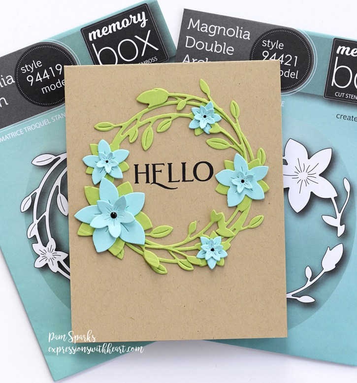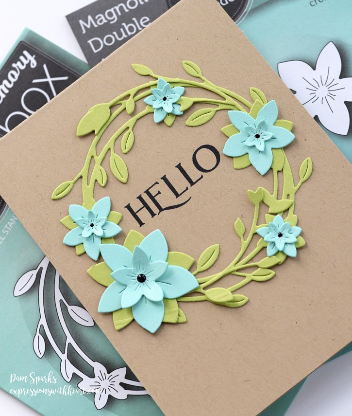 Hi everyone! I used two NEW dies on my card today, the Magnolia Wreath and the Magnolia Double Arch dies.