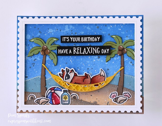 It’s Friday and somebody’s birthday somewhere! haha This card was for a grandson that has a hammock in the backyard and loves it! As close to a beach as you can get in Iowa! lol