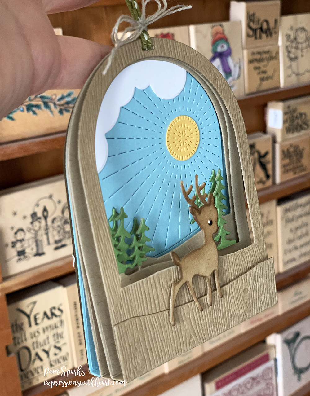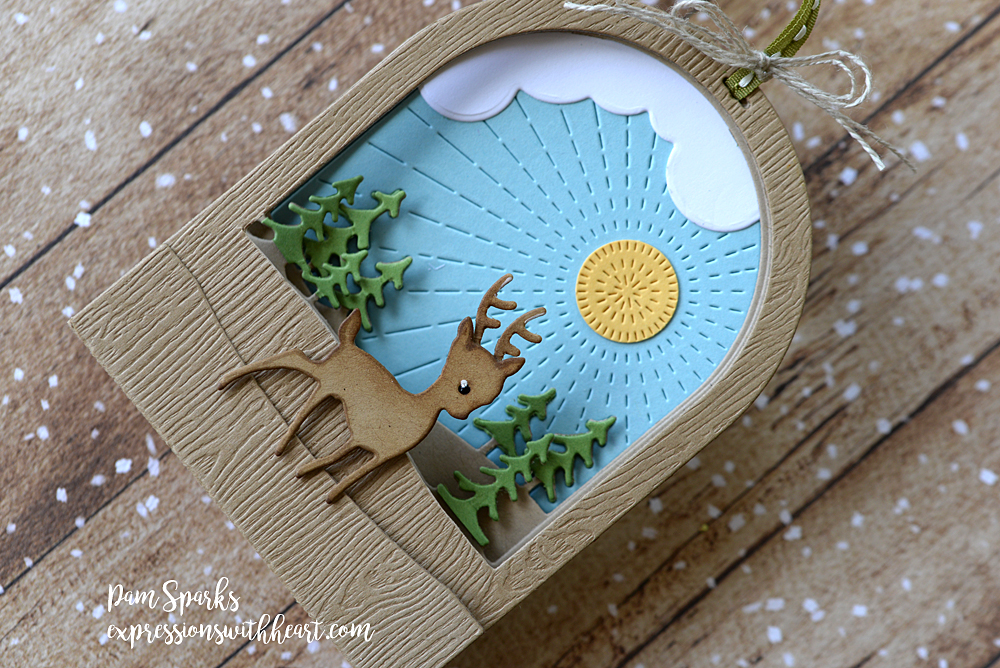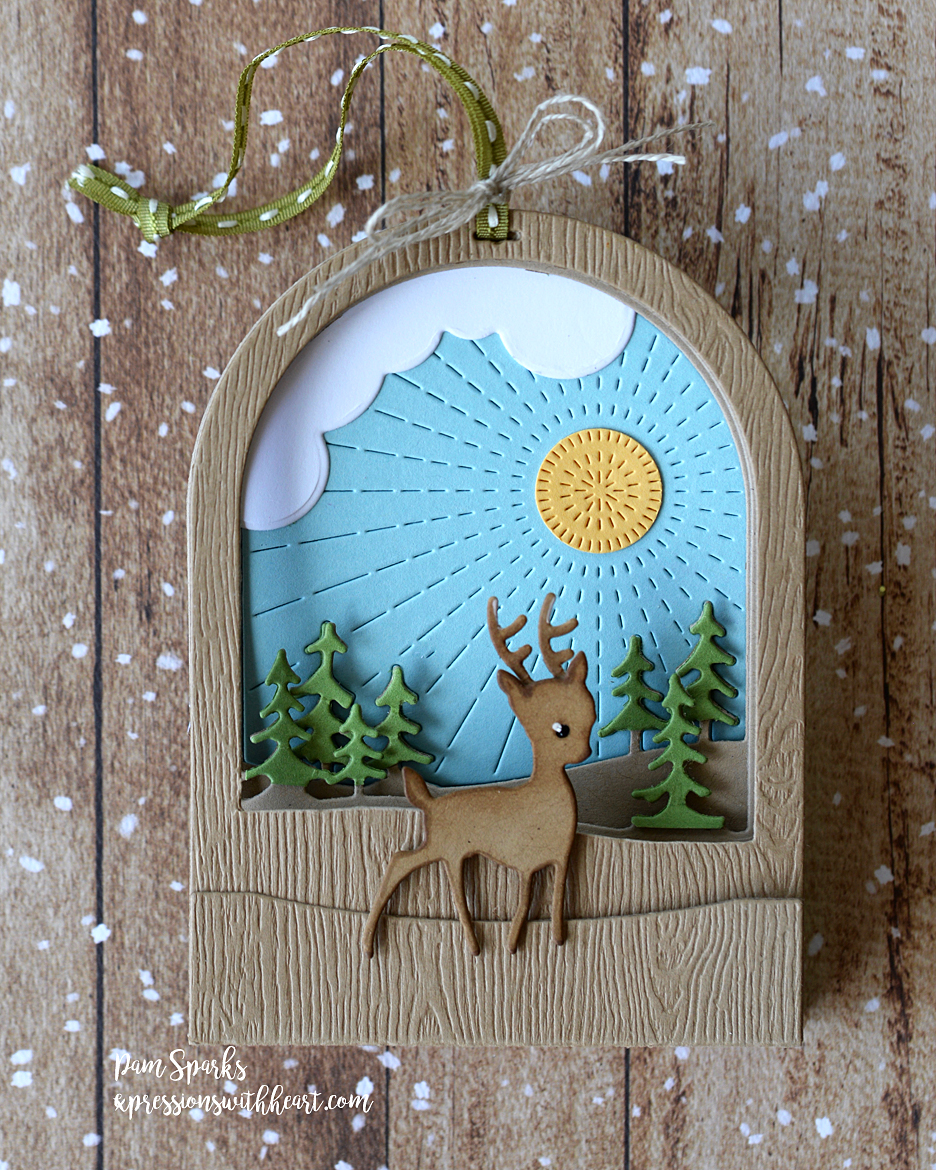 Hi everyone! Back with #2 in the Snowglobe series with these new dies. Look at this cute deer…such personality! lol The beautiful sky…pretty trees… I love it so much!