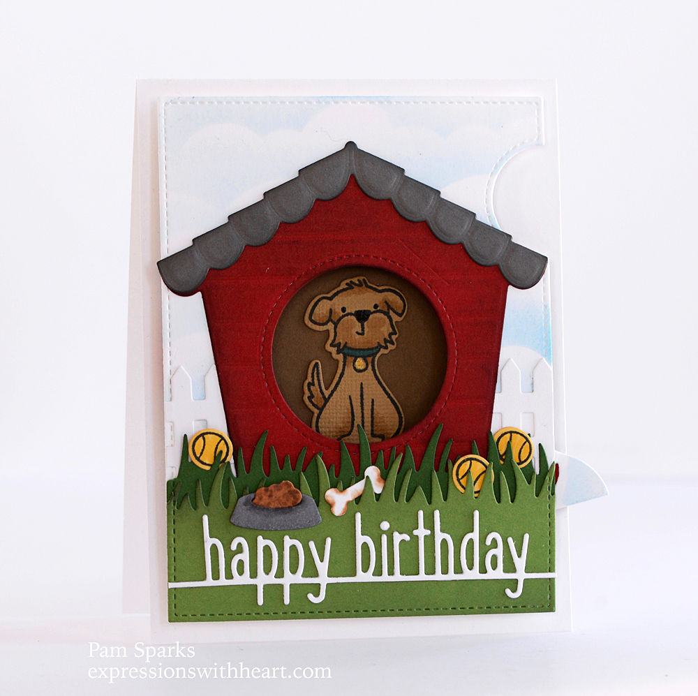 I used the Memory Box Birdhouse die set for the doghouse because I don’t own the Lawn Fawn birdhouse die.
