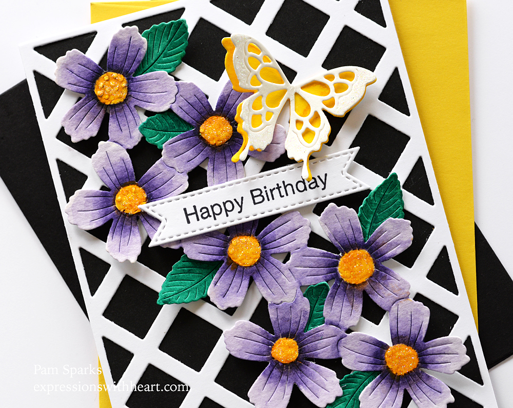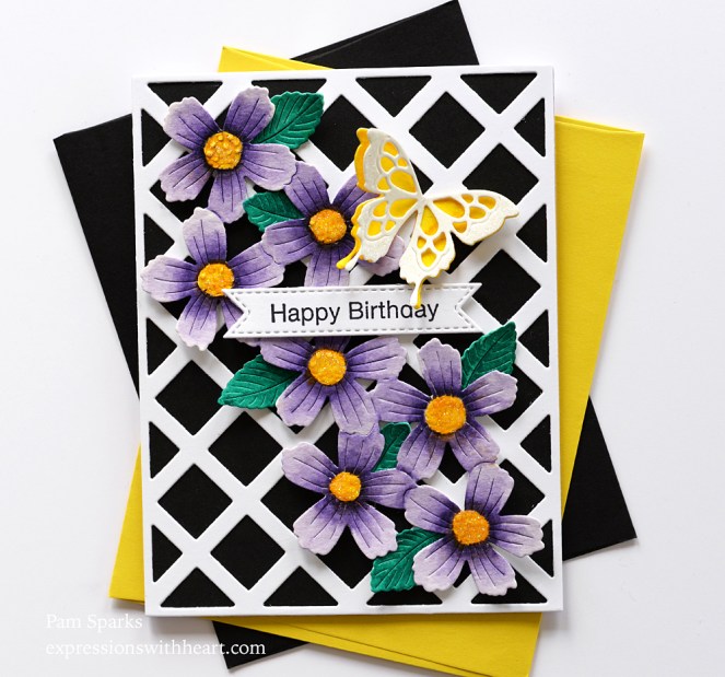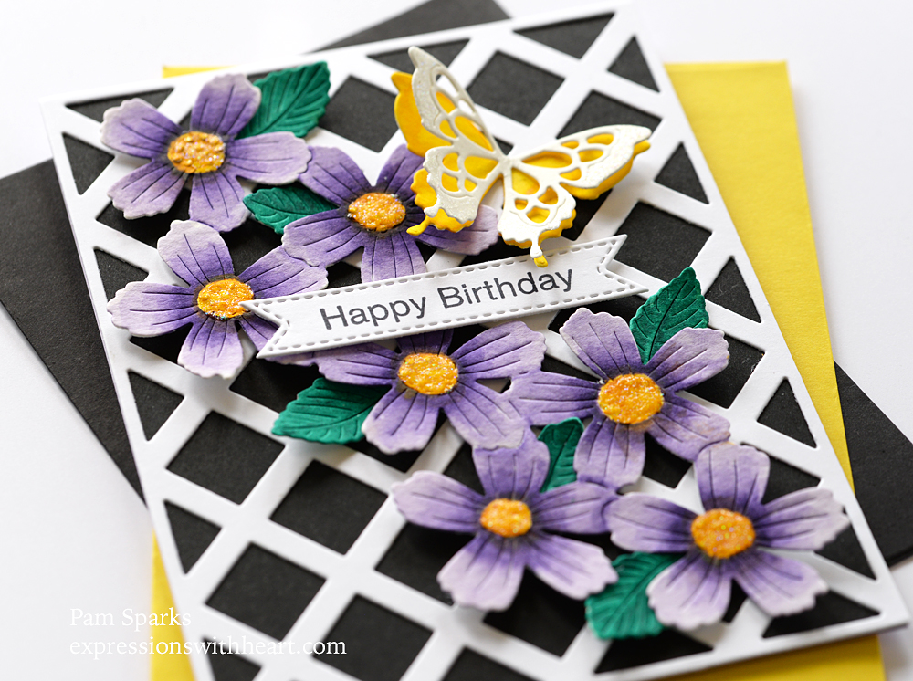 4. We must have flowers for this last bit of summer! Beautiful card. I can never get enough of lattice. Love how these pretty colors pop on the black. Great sentiment set, too. You’re such an enabler!