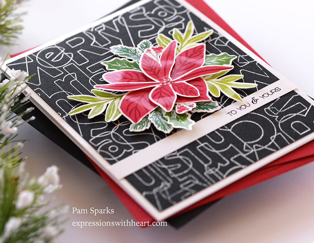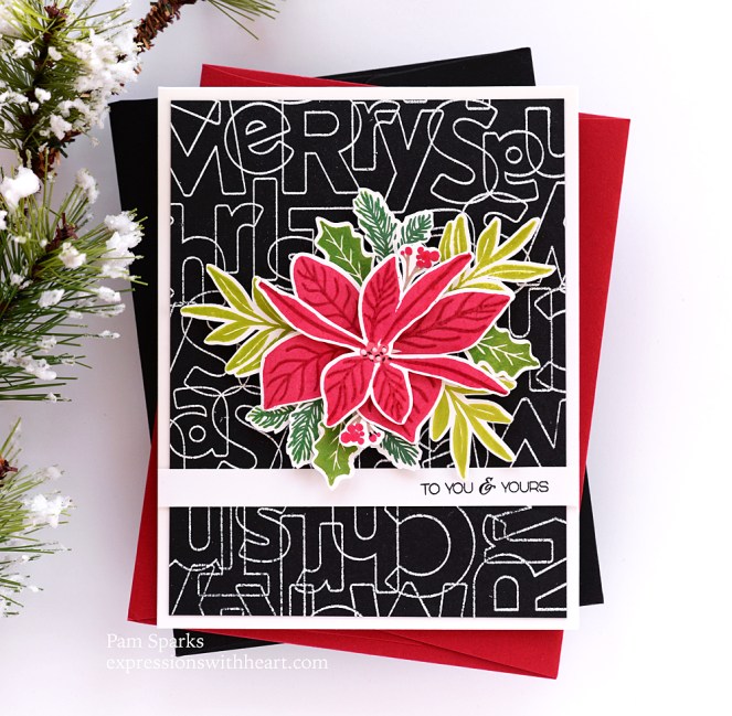 1. I’ve been waiting for this card, and it was worth the wait! That background is fabulous, that pop of black! And of course, I love the gorgeous poinsettia! Hmmm…you’d think they’d send the matching dies. Beautiful card! Thanks for sharing!