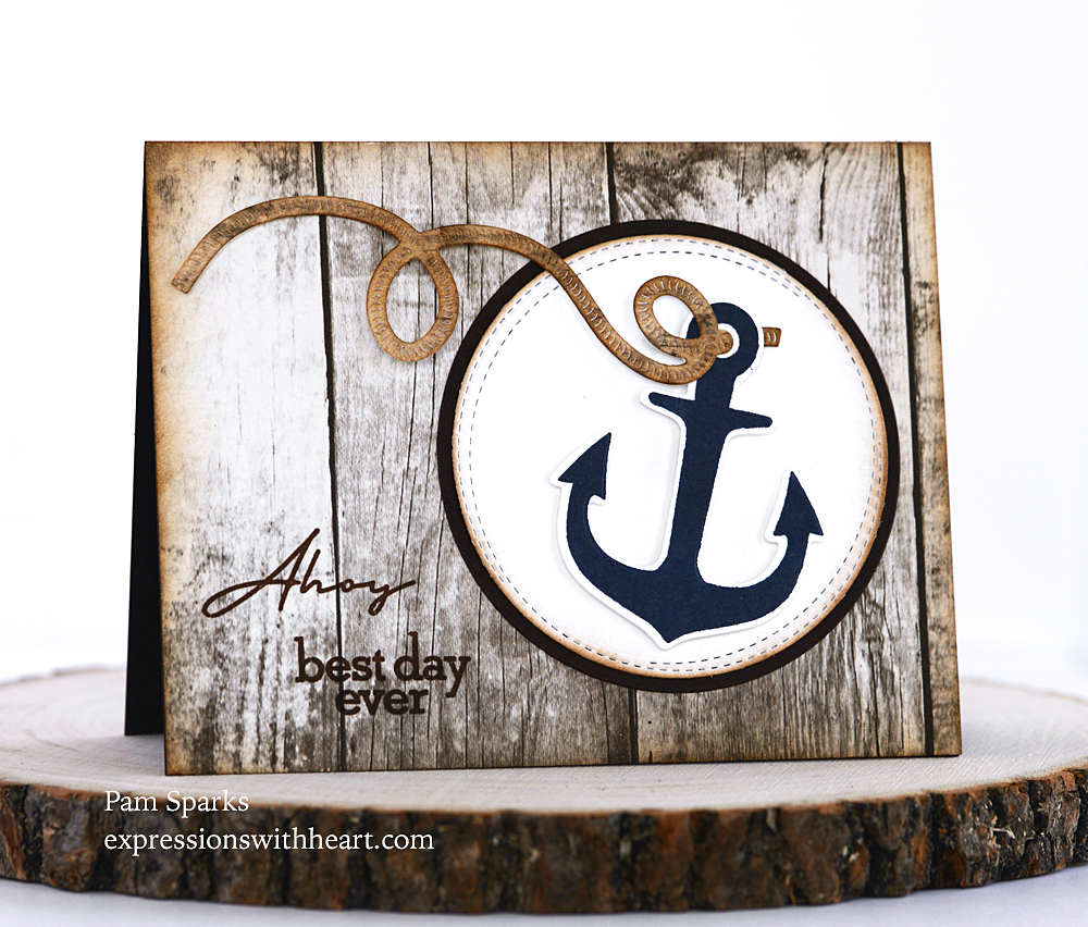 Some woodgrain pattern paper…two sentiments stamped in the MISTI in Ranger Coffee Archival Ink from the You Anchor Me set.
