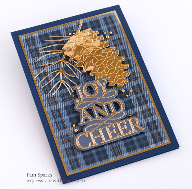 Beautiful gold with the bit of gold in the paper. The blues are so perfectly coordinated. Really love the sentiment collection, too. Your card is a classic and so elegant, Pam!