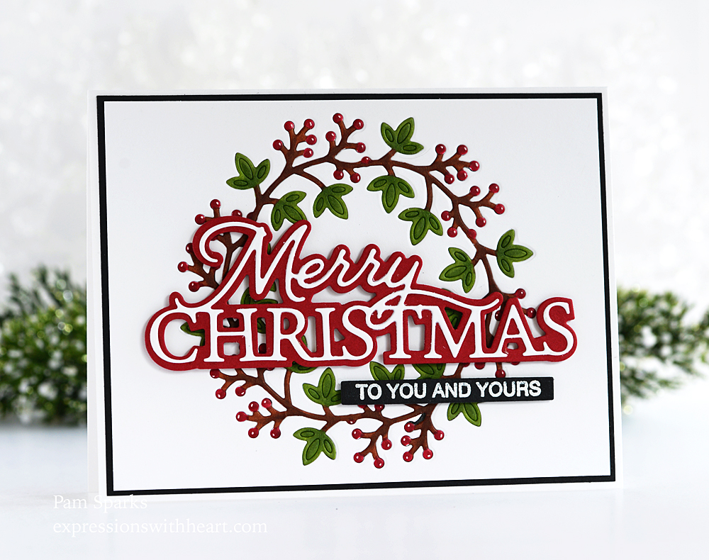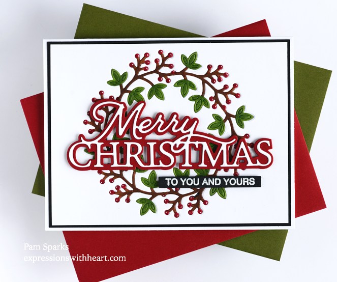 I LOVE the inlay! That is such a cool look! A very festive and colorful card with the pretty wreath and layered sentiment. I’ve been working on mine all year, but now is the time to really get cracking!
