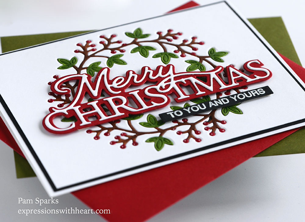 OH! The die cut Merry Christmas is a beautiful new die, Merry Christmas Posh Script! I die cut it in TE Cherry Pop and white cardstock.