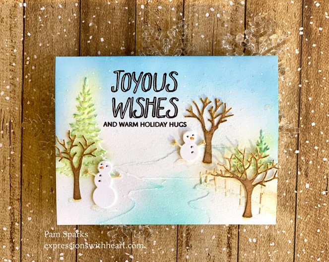 Would you just look at this! It can’t get much cuter with the addition of the snowmen. I think the iced over stream is perfect. It suggests there are a bazillion things you could do with this scene. I love it, Pam!
