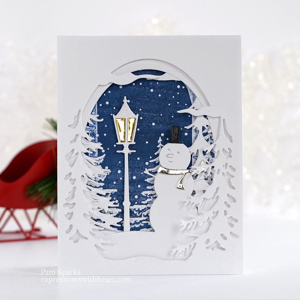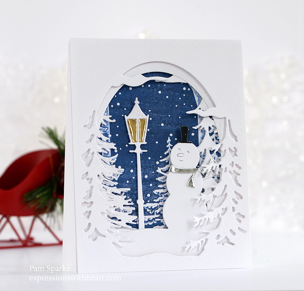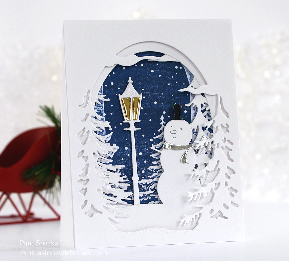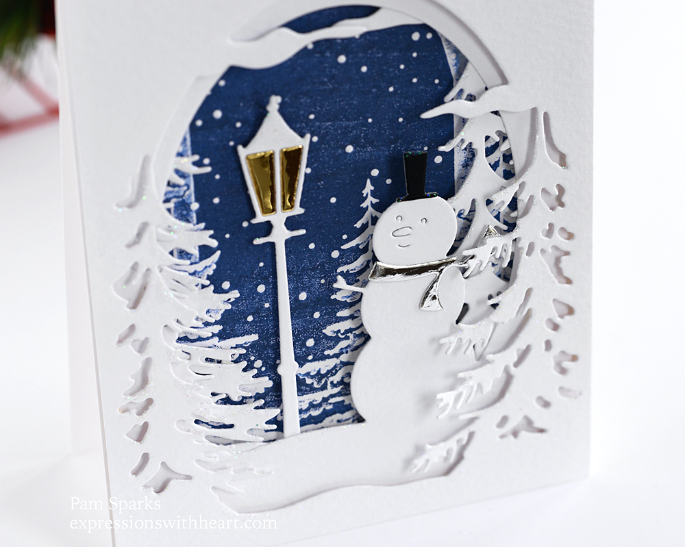 I used Memory Box Fairy Drops for snow on the tree branches but it’s hard to capture.