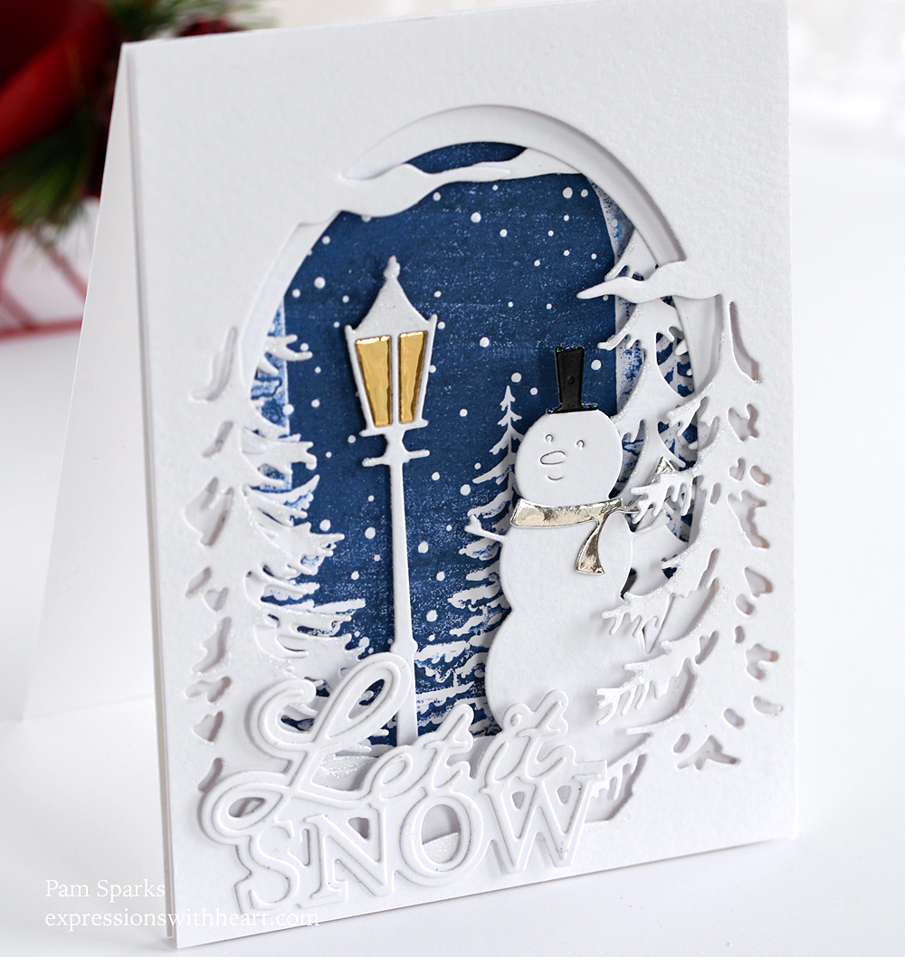 1. Oh so beautiful, love your tunnel card. I like the let is snow script on the card and all the extra touches on the card. It is snowing a little here today, so this card is perfect.