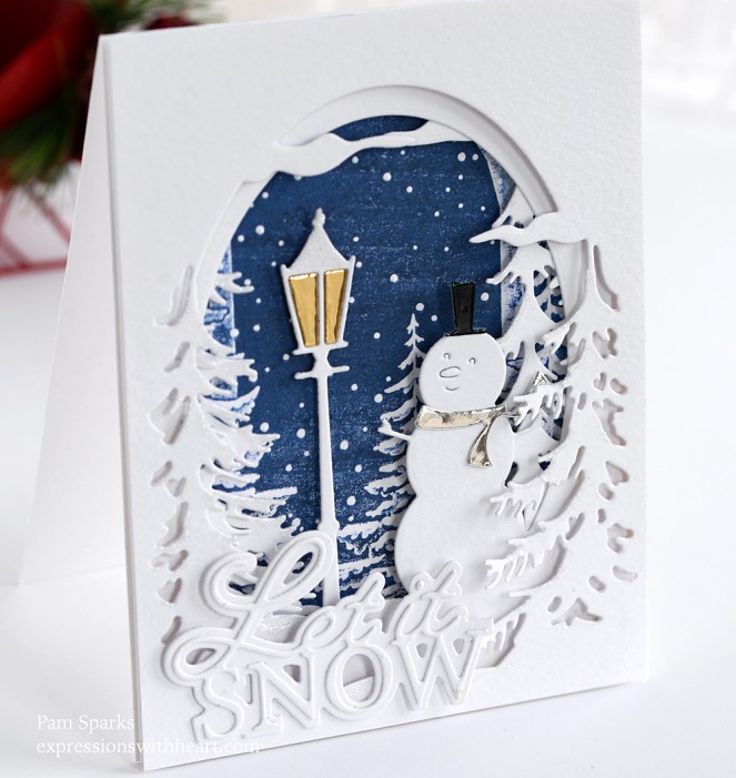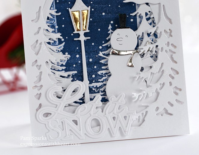 The next three pictures I added the new Memory Box Let it Snow Posh Script die to the mix… which do you like better?  With the words or without?!