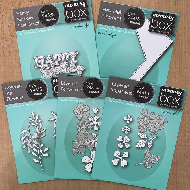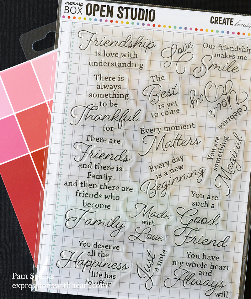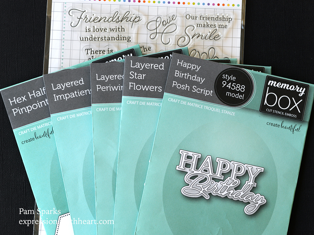 Look at this NEW Memory Box stamp set!!!  (Full picture lower in the post)  It matches the font of this Happy Birthday Posh Script die and the Miss you Posh Script die on my next card!  I absolutely love matching fonts for the inside of my cards! ❤
