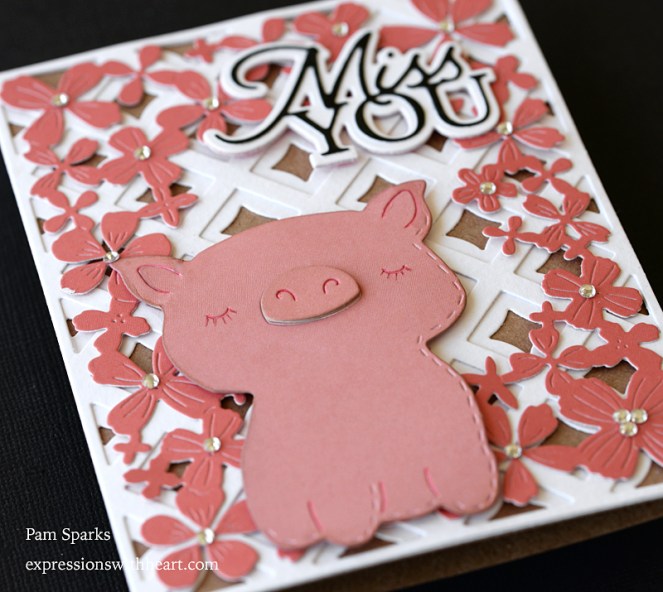 5. This actually hurts. Ohhhh, your first card is so beautiful with all the flower dimension and color and popping on the black and white. And then your second card is utterly adorable with the piggy on lattice and the beautiful flower frame. I’m not sure which of these dies I can live without. You’re so good!