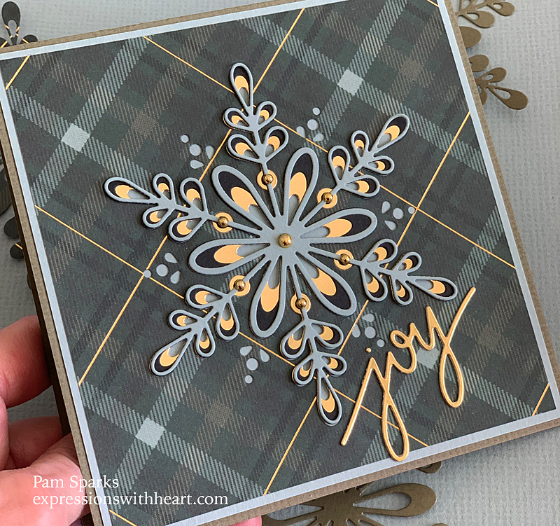 2. I do love the Memory Box plaid papers, and that snowflake — wowie WOW! I need to give serious consideration to these sentiments, too. Can never have too many. Thanks Pam!