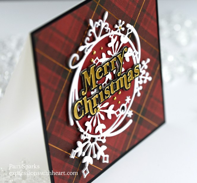 I used Memory Box Black Glossy cardstock for the panel and the Proper Merry Christmas sentiment.