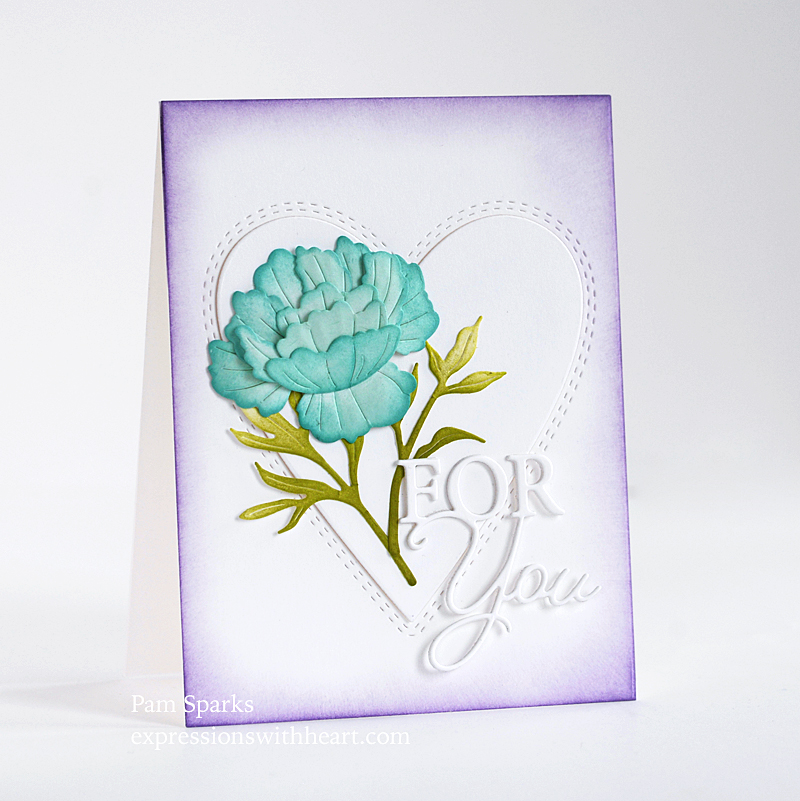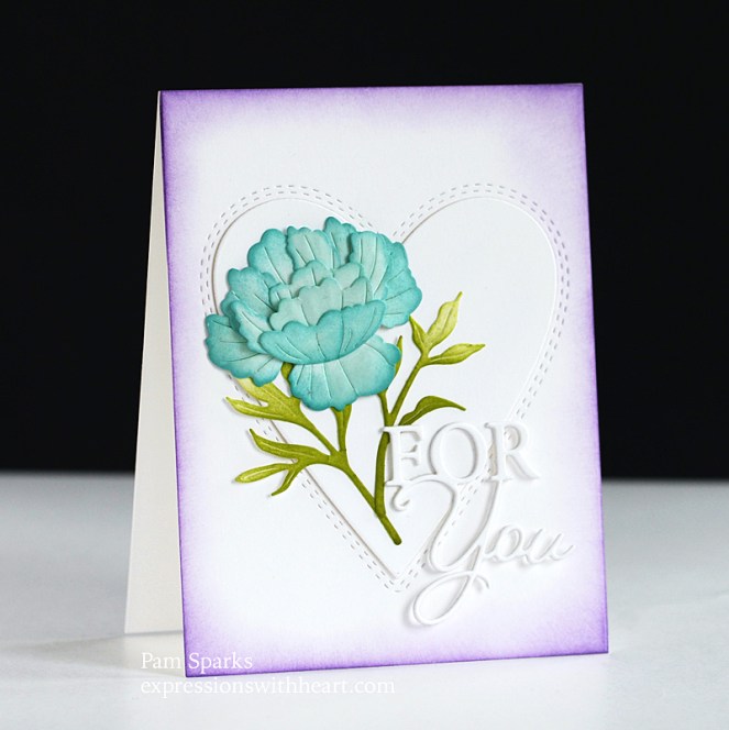 2. Oh, no, what a bother with your email address. You’ll have to let all your friends know, too. As if you needed that headache, sheesh! Gorgeous card today, Pam! The peony is really pretty the way it’s all layered up like that, and I do love the double stitched hearts. Good luck with everything, and happy new year!