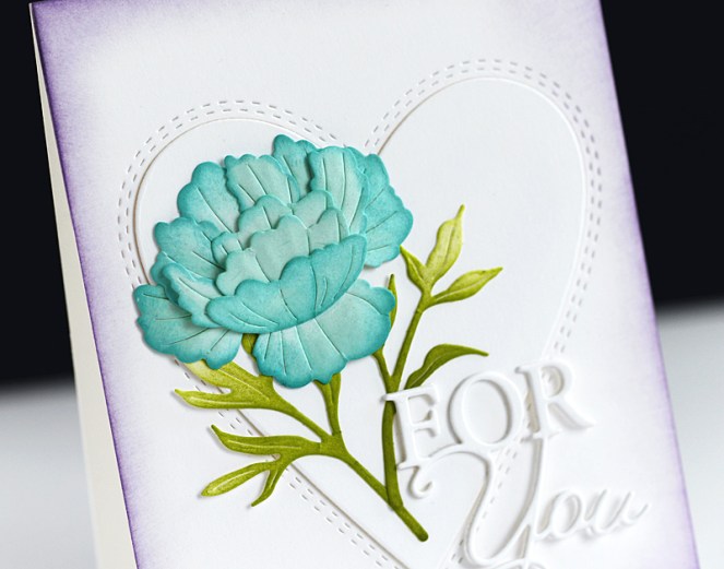 A brand NEW Peony die from Memory Box.. very fun and easy to use… I die cut in white and inked with two Altenew ink cubes and mini ink blending tools.   The leaves/stems come with it too and I inked them the same way.  I’ll link the colors below.