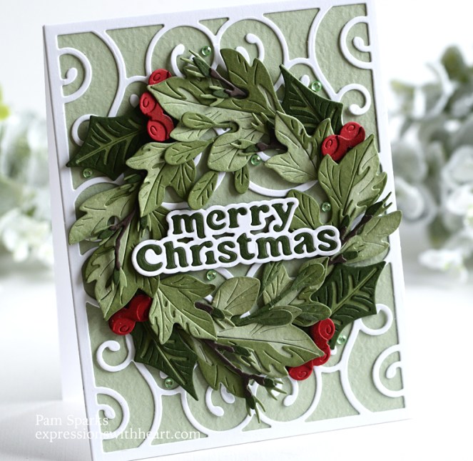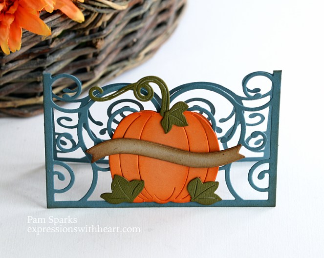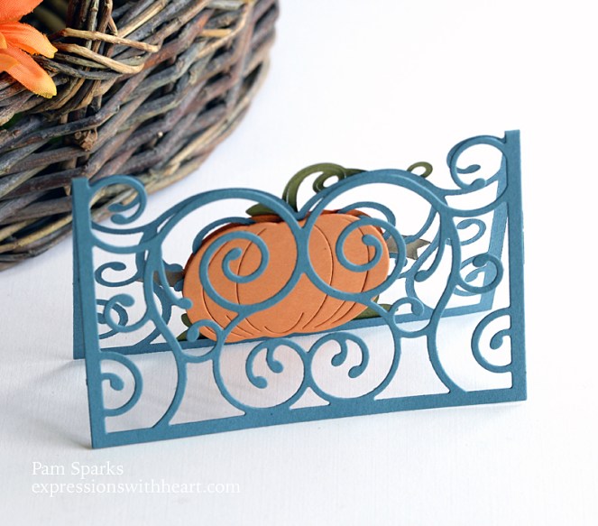 3. I’ve looked at the gilded frame die and thought it was pretty, but leave it to you to make it look fantastic! The wreath is incredible with so much depth and detail, and the background makes it super festive. Brilliant idea to use it as a place card with the pumpkin for Thanksgiving dinner. We aren’t fancy enough for place cards, but I love the idea and think it could have many uses in this form for different occasions. Awesome inspiration as always, Pam!